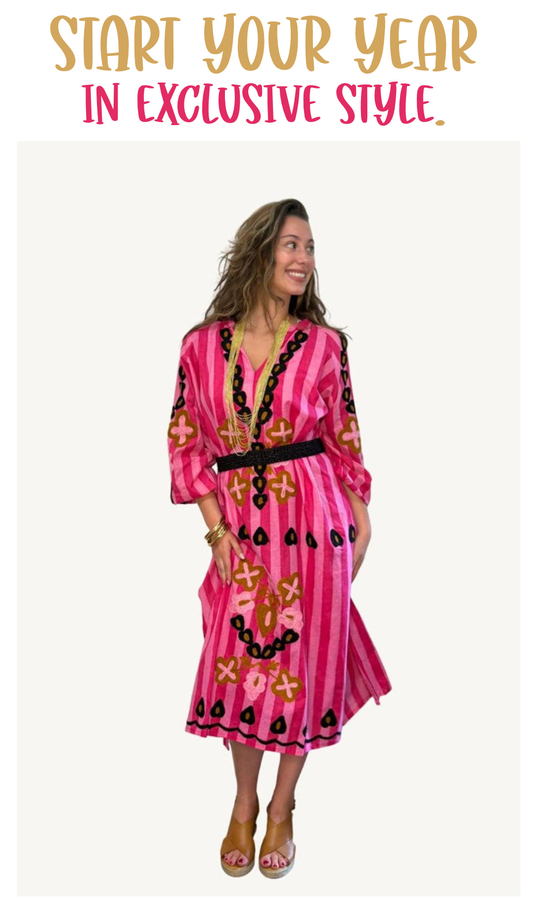 The Anita Blue Stripe and Embroidered Dress By Origen