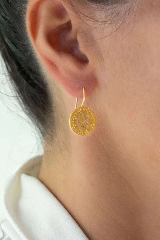 Radiant and vibrant, the Multi Tourmaline Amber Earrings by Rubyteva combine warm amber tones with colourful tourmaline gemstones for a playful yet sophisticated look. Handcrafted in high-quality sterling silver and finished with genuine 22k gold plate, these earrings bring bohemian elegance and energy to any outfit, perfect for everyday wear or special occasions.