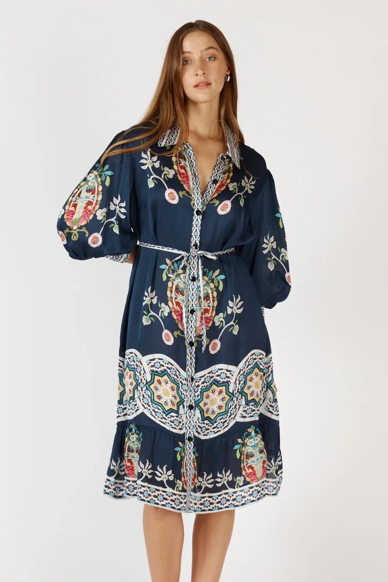 This knee length dress combines elegance and sophistication effortlessly with its ¾-length sleeves making it the perfect piece for transitional weather. Designed for effortless wear,  this dress is equally suited for casual days, workwear, or dressed-up occasions.