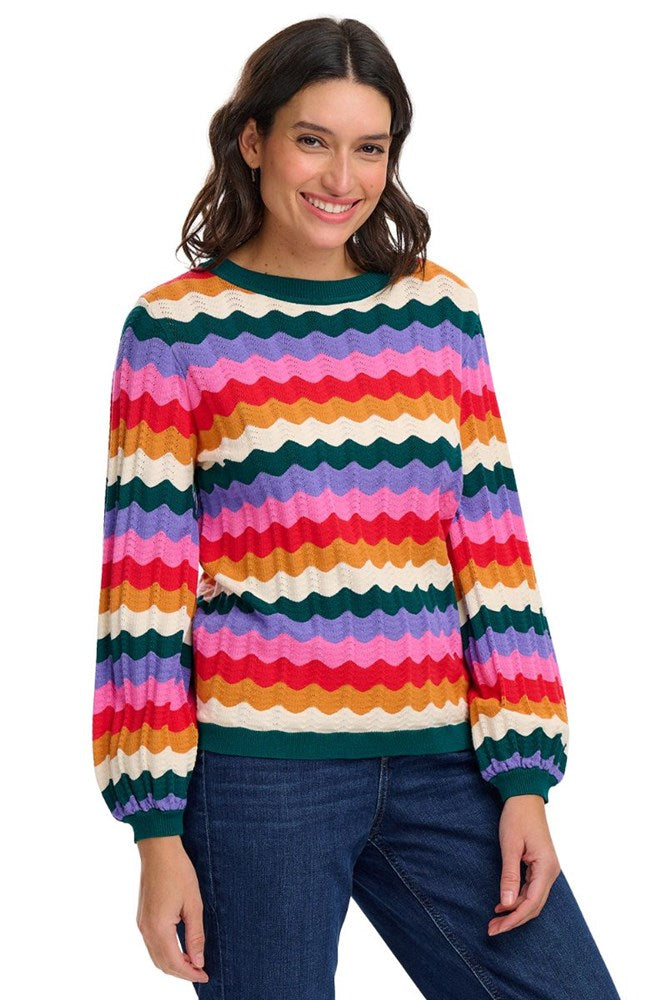 Step into the Ivona Jumper by Sugarhill. Crafted in the UK with playful attention to detail, this jumper brings a playful twist to your everyday wardrobe. Its soft, sustainably sourced knit feels luxuriously gentle on the skin, perfect for layering over your favourite jeans or a relaxed skirt.